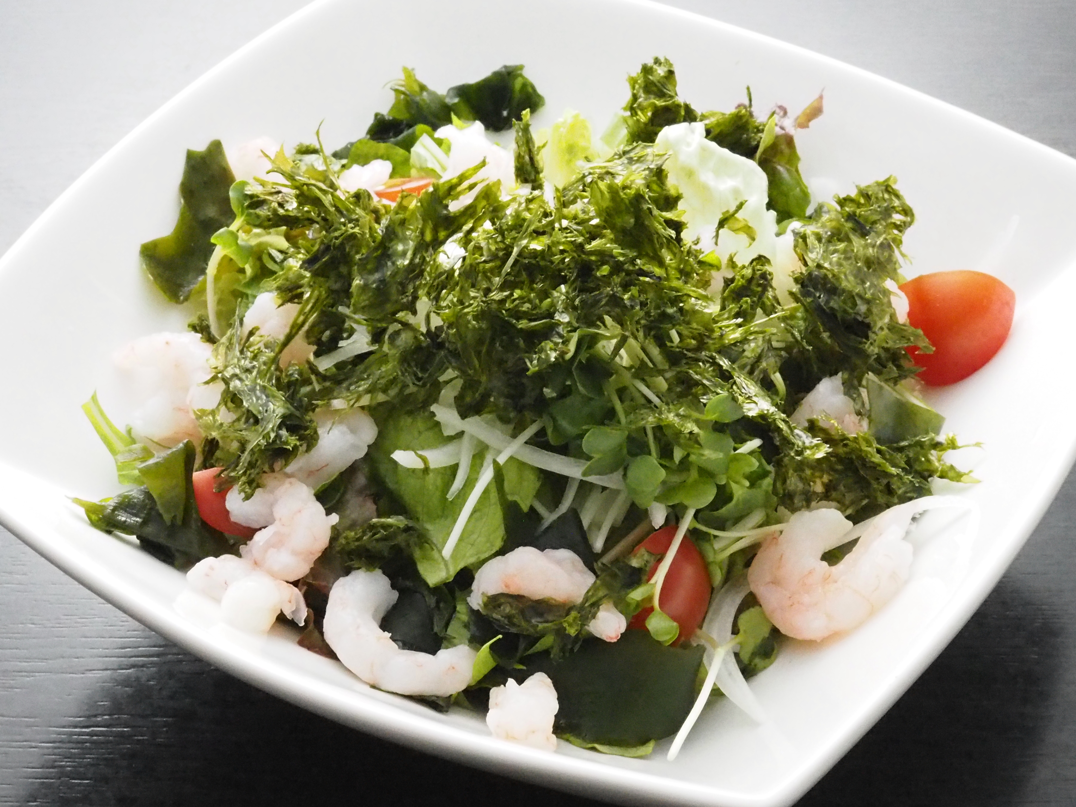 甘海老とアオサ海苔のサラダ 西京味噌ドレッシング 680円(税込748円)